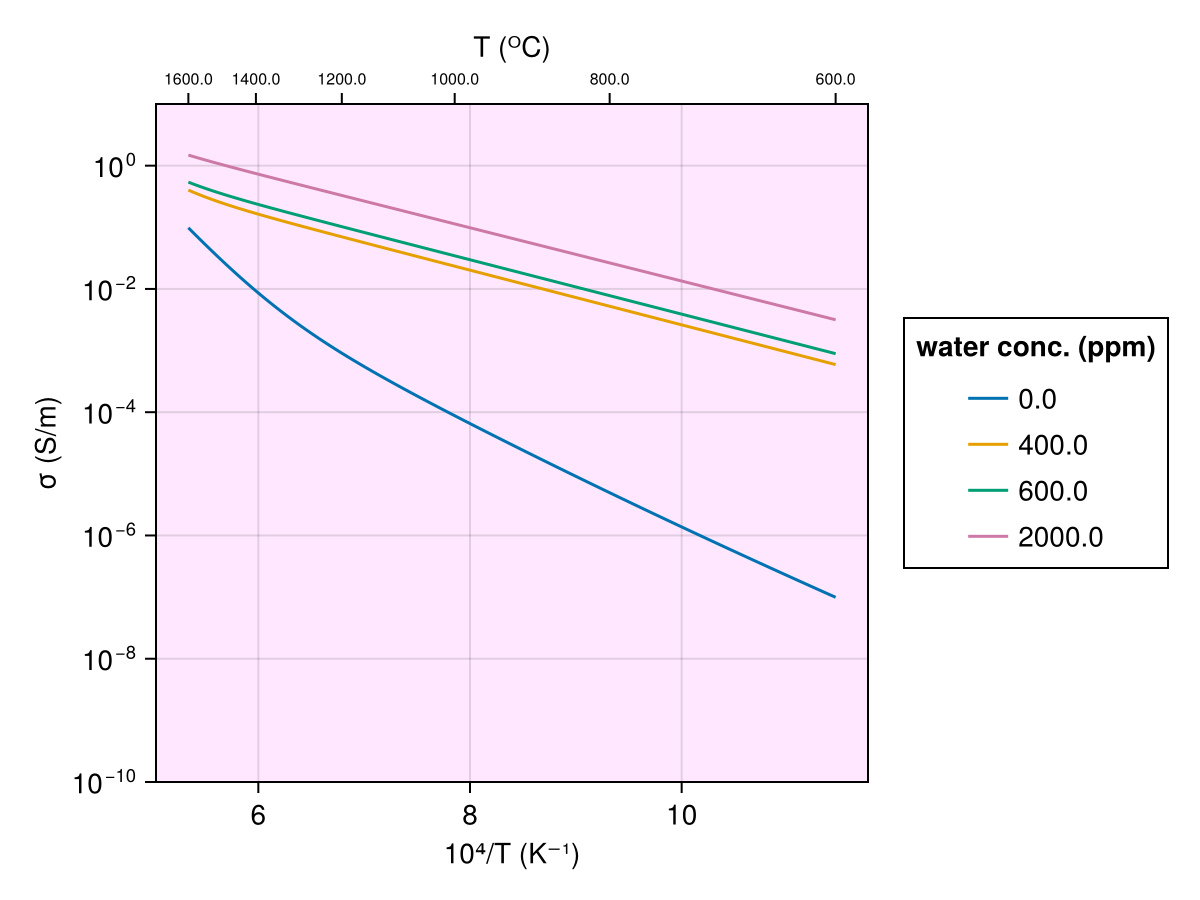 UHO2014(T, Ch2o_ol)Electrical conductivity model for olivine dependent on temperature and water concentration.