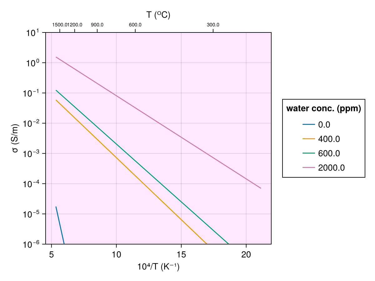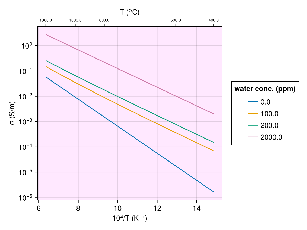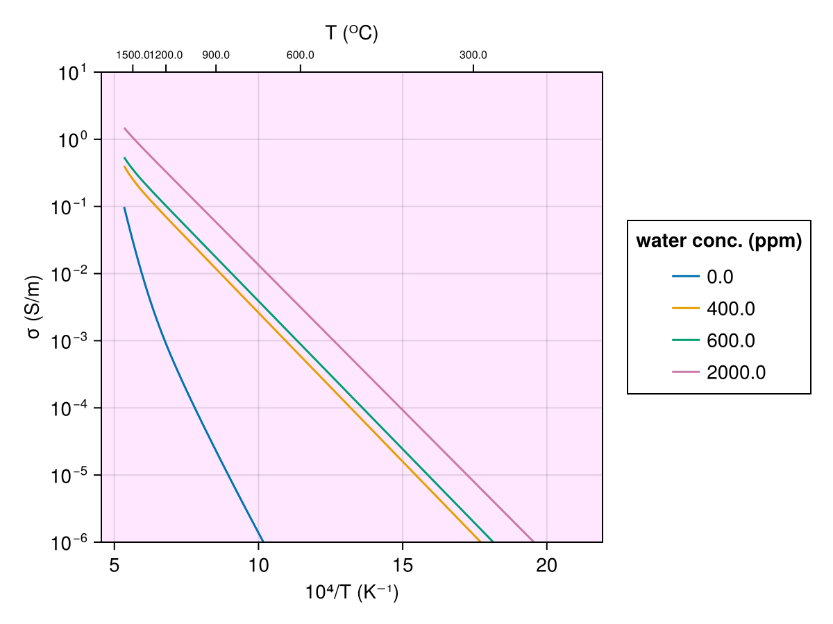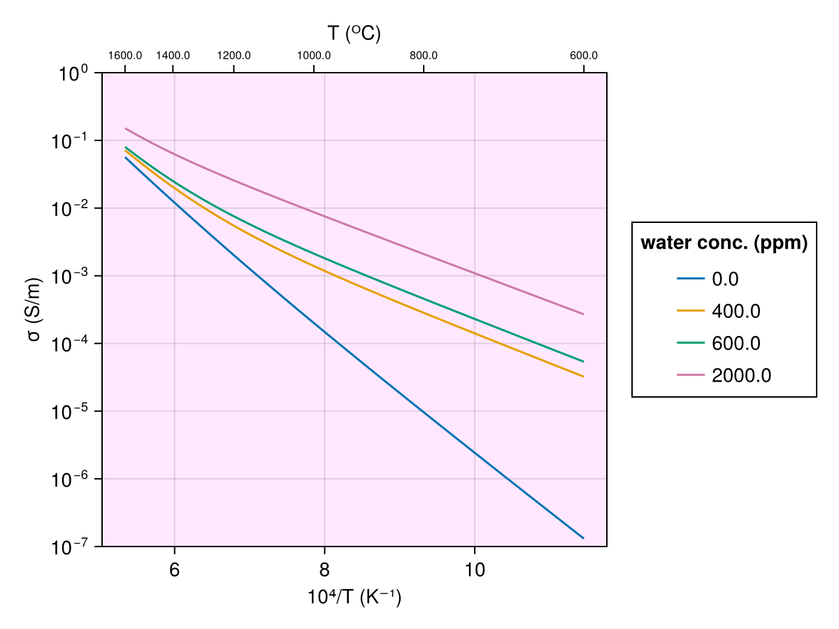 Jones2012(T, Ch2o_ol)Electrical conductivity model for olivine dependent on temperature and water concentration.