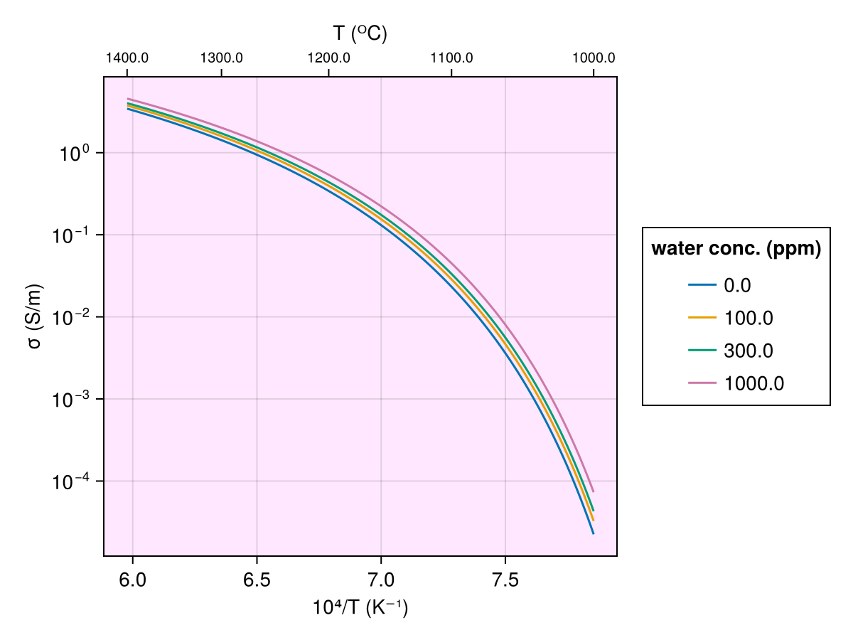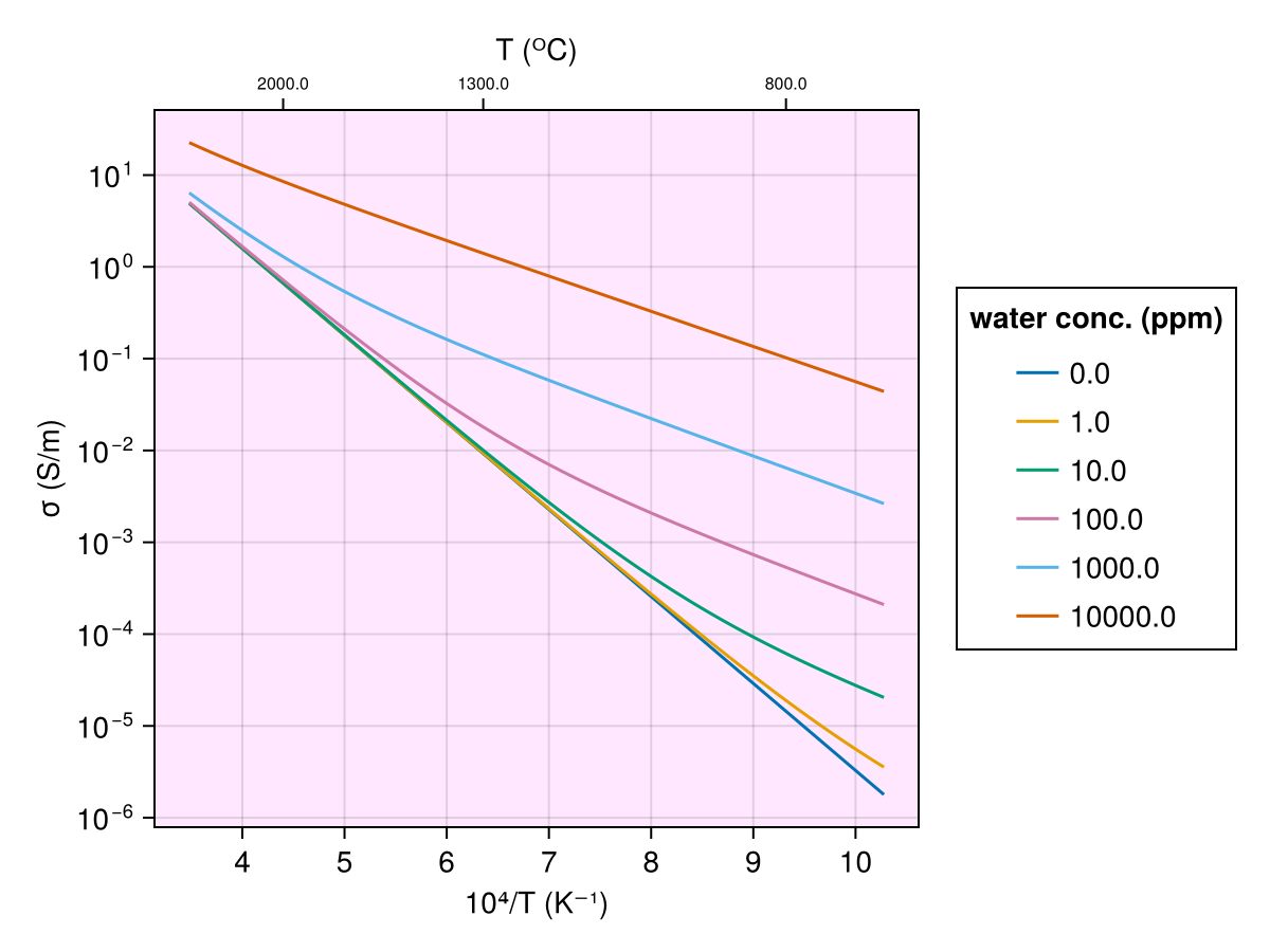 Ni2011(T, Ch2o_m)Electrical conductivity model for basaltic melt dependent on Temperature and water content in melt.