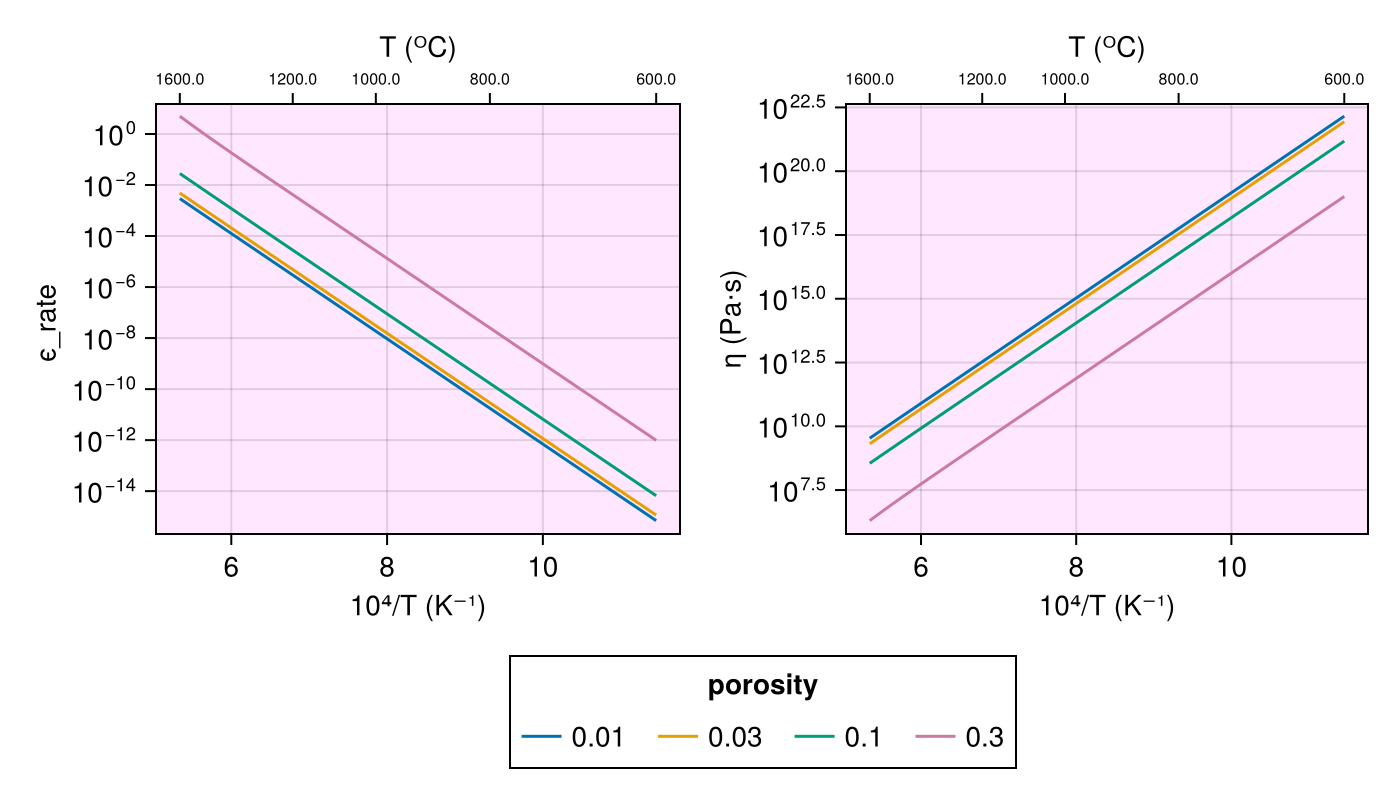 xfit_premelt(T, P, dg, σ, ϕ)Calculate viscosity for steady state olivine flow for pre-melting, i.e., temperatures are just below and above the solidus, per Yamauchi and Takei (2016)