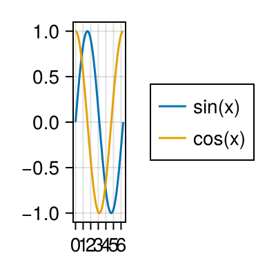 While a more interested reader is encouraged to explore the Makie.jl documentation, here we suffice by saying that a figure is the whole figure, containing multiple axis objects. Each axis can contain a plot, colorbar, legend, etc. Therefore, we advised that while creating legends, use another axis. This allows more control.