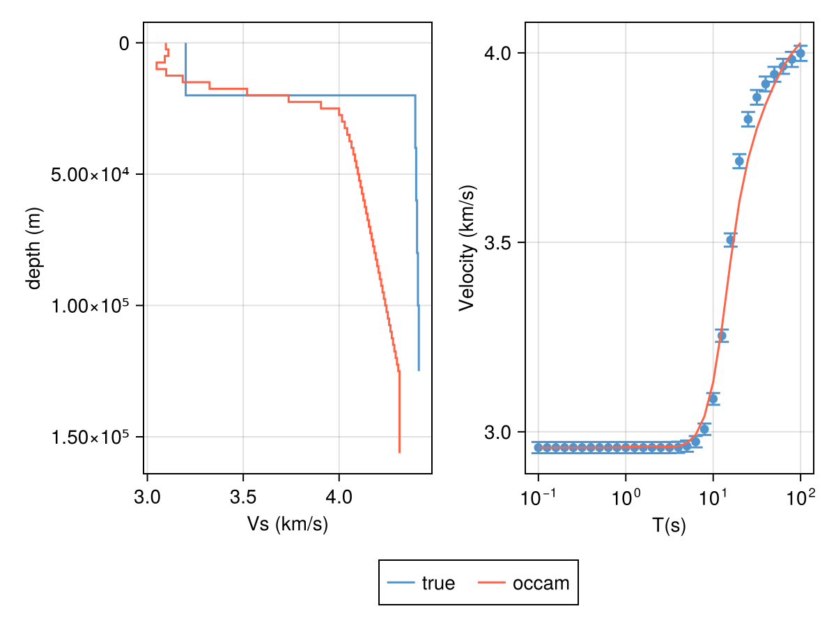 The final result will be stored in the same variable m_occam. All we need to do now is specify using Occam and then calling inverse!.