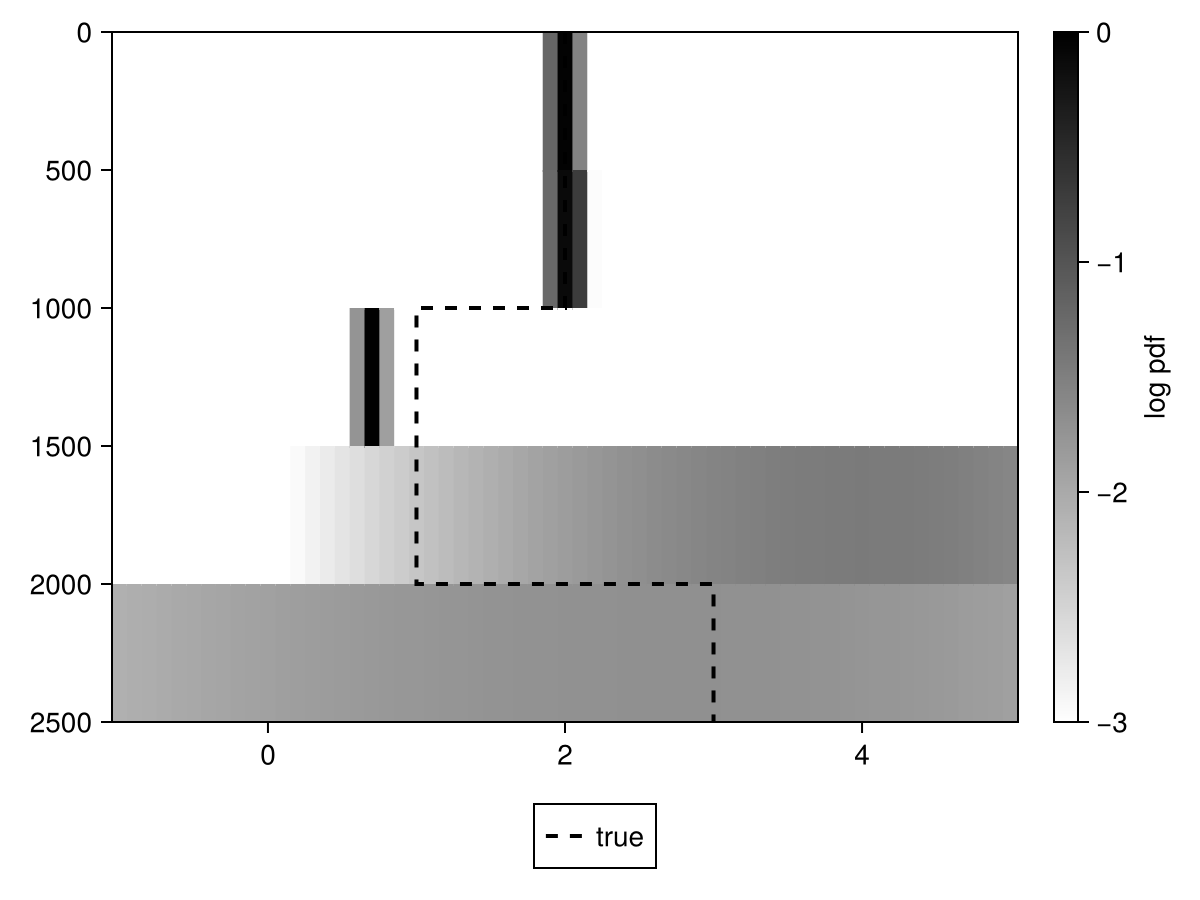 Colorbar(fig[1, 2], hm; label="log pdf")