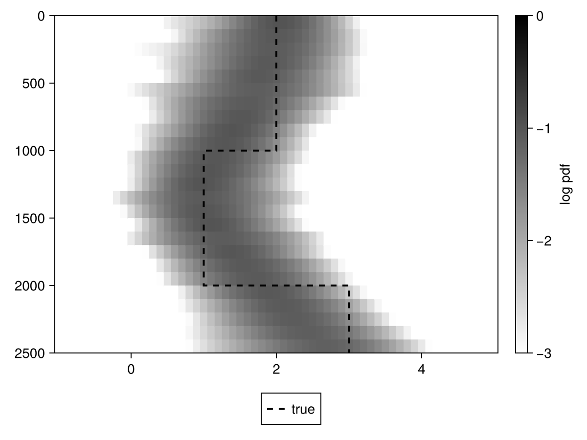 Colorbar(fig[1, 2], hm; label="log pdf")